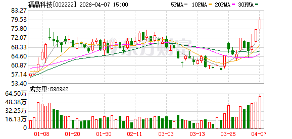 数据宝统计,罢了14:29,福晶科技成交额42.26亿元,创上市以来新高。最新股价高潮5.55%,换手率11.82%。