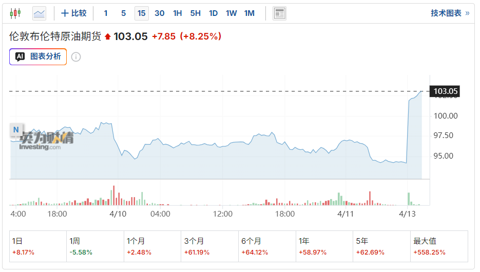 跟着好意思国与伊朗在巴基斯坦流程马拉松式议论后未能终了左券,好意思方有时秘书将对霍尔木兹海峡扩充全面闭塞,大众动力供应链再度遇到剧烈冲击。受此影响,石油与自然气价钱大幅飙升。