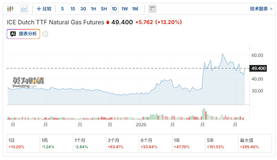 大盛策略自好意思以对伊发动军事打击以来,欧洲自然气价钱累计涨幅已逾越50%。尽管该价钱较3月19日因伊朗蹙迫卡塔尔液化圭臬时创下的盘中高点已回落约三分之一,深圳股票配资平台但最新闭塞令无疑将重新点火市集的供应惊恐。