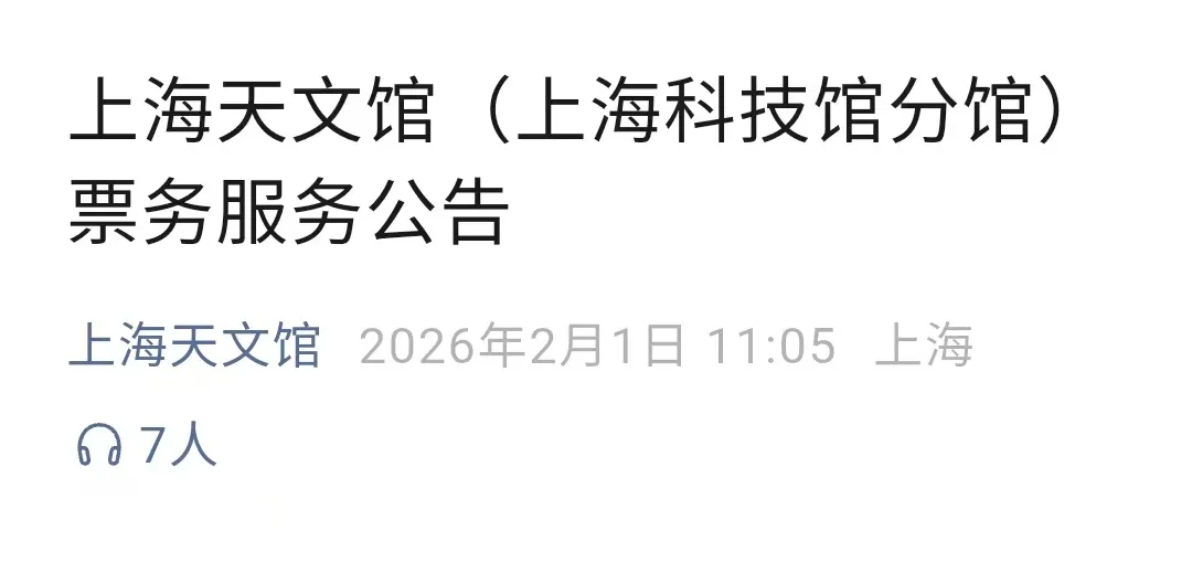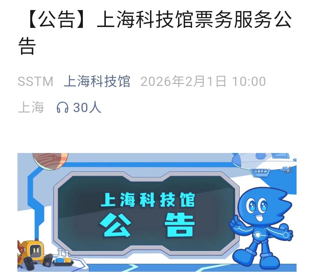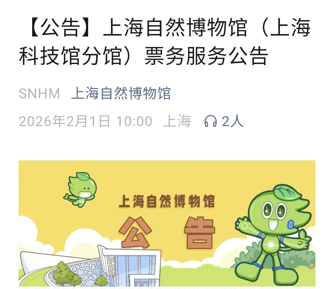 亨达配资2月1日,上海科技馆、上海自然博物馆(上海科技馆分馆)和上海天文馆(上海科技馆分馆)分别在官方微信公号发布票务服务公告:将自2026年2月17日起将对票务规则进行优化,实施退票费机制。