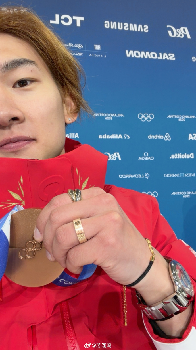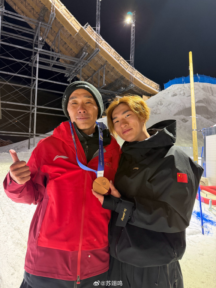 赛后,苏翊鸣在酬酢媒体发布的图片。