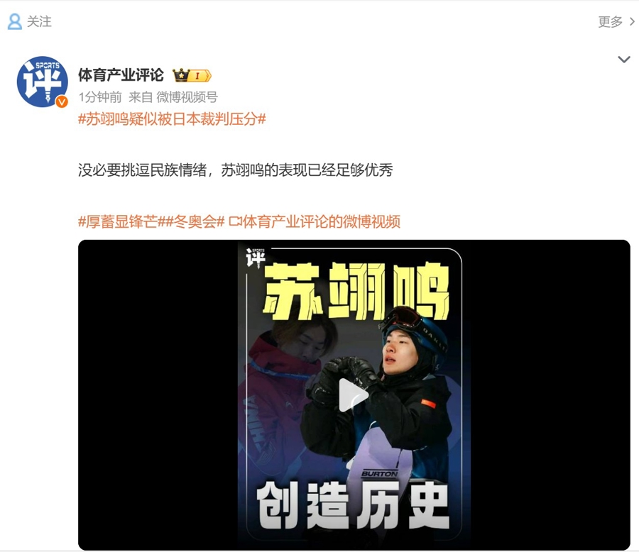 北京本事 2 月 8 日,米兰冬奥会单板滑雪大跳台决赛截止,苏翊鸣无缘卫冕,得回铜牌,这是中国军团在米兰冬奥的首枚奖牌。赛后有网友认为苏翊鸣疑似遭到日本裁判压分,引起热议。不外,苏翊鸣的多礼应答展现了中国健儿的大将风姿,这种对体育精神的交融,比竞技收获更值得尊重。