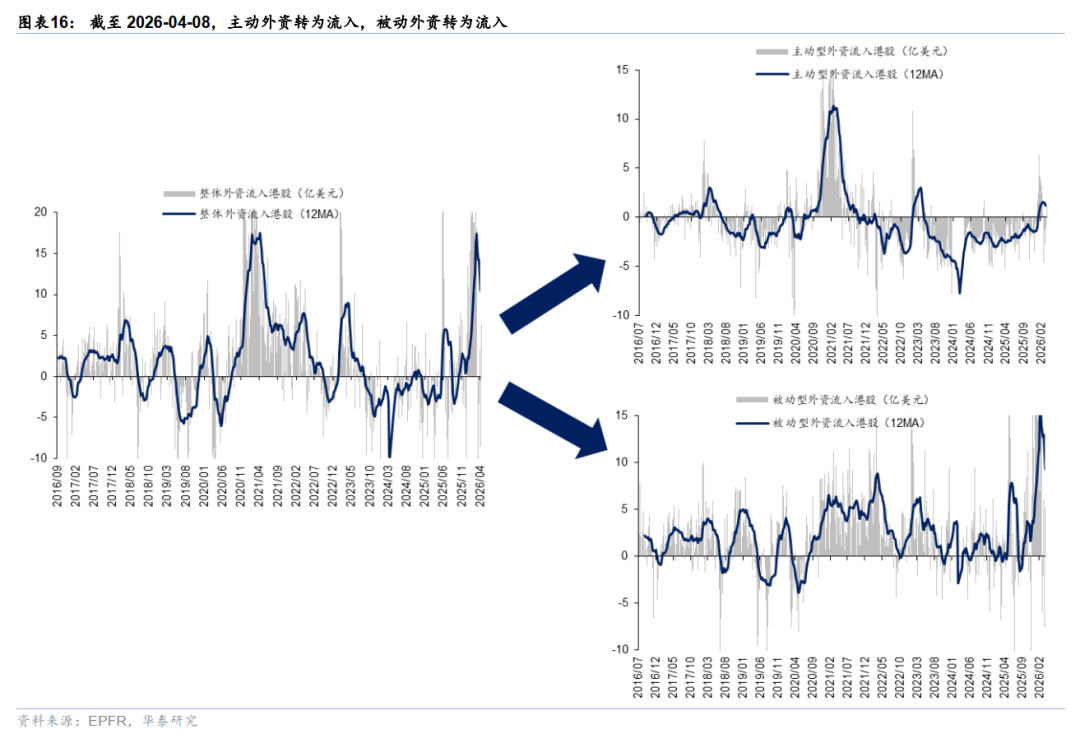 外资方面,法例周三,EPFR口径下外资净流入港股6.4亿好意思元(前一周为净流出港股8.5亿好意思元),其中主动外资净流入1.2亿好意思元,被迫外资净流入5.2亿好意思元;沽空方面,最新一期港股沽空往来/沽空抓仓比例区别-0.4pct/+0.0pct至14.5%/2.43%,举座变动不大;南向方面,上周南向净流出港股118亿港币,较前一周净流入54亿港币,转为净流出,宝尚配资商贸零卖、银行、传媒、医药、电力及公用事迹等板块流入名次靠前。