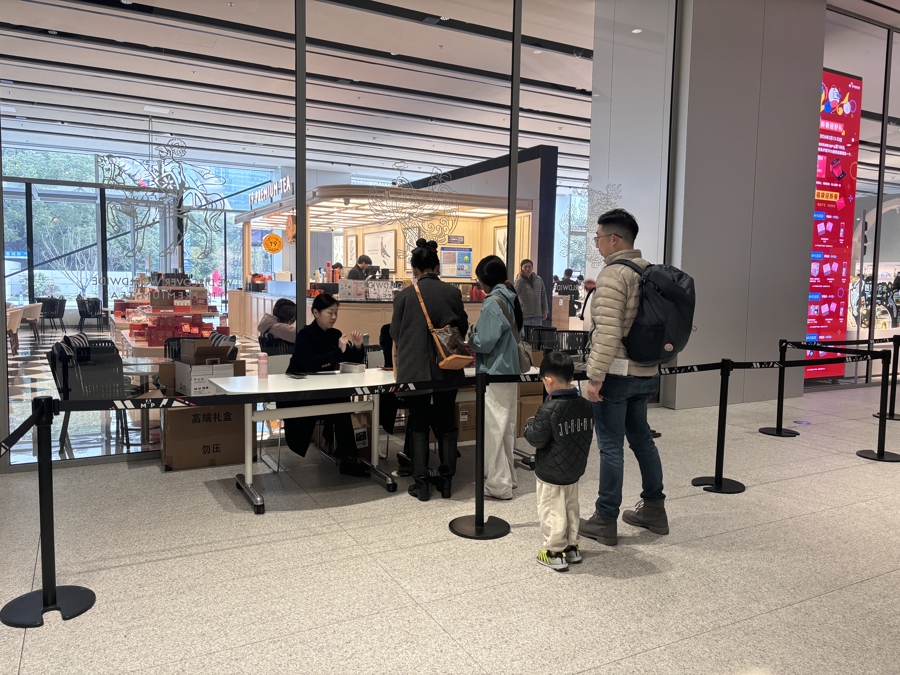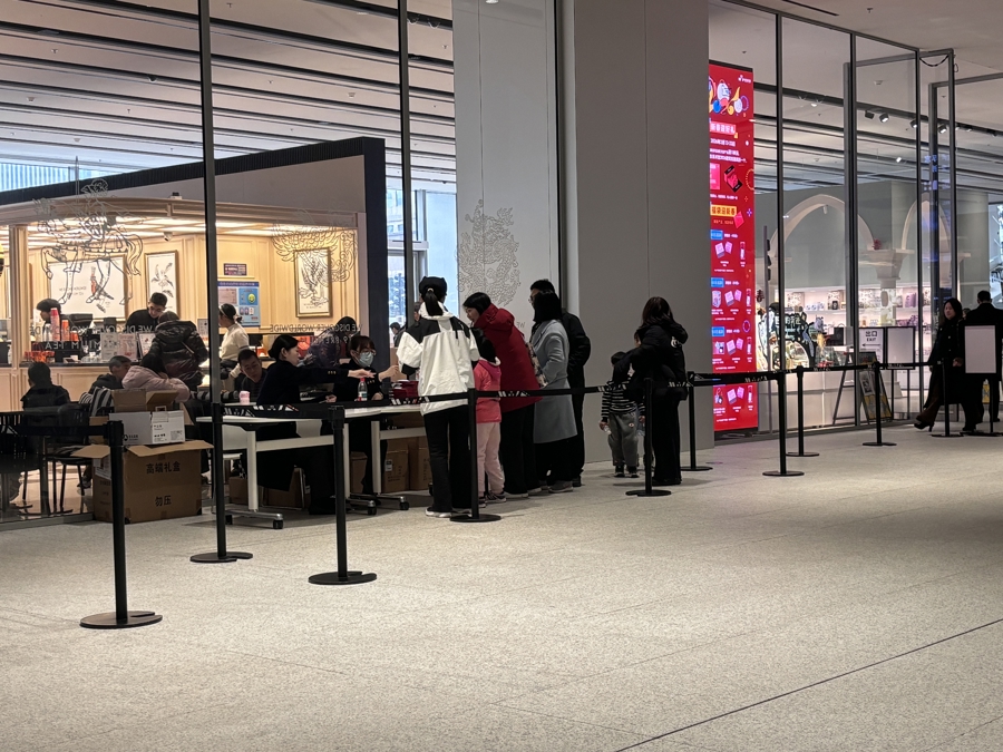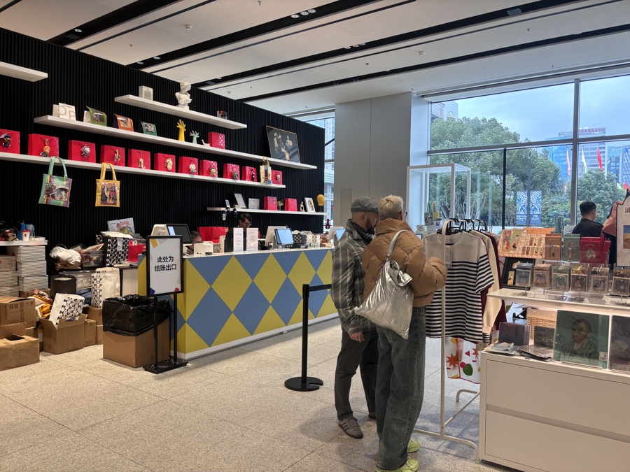 大除夕中午,浦东好意思术馆文创店,番邦不雅众正在挑选商品。阮佳雯 摄