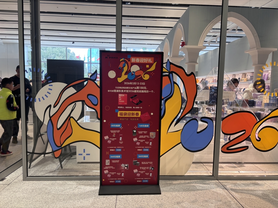 惊喜不啻于馆内。不久前,浦东好意思术馆文创快闪店入驻南京西路商圈的“南西·海上驿”,为期三个月。现场,逾越200款东说念主气附近亮相,不仅有“炸毛梵高”玩偶、旋转金属雪柜贴等“爆款”返场,还推出甩手联名款水桶包、札记本,仅在驿站线下售卖。2月13日至23日,文创店推出限时满赠举止,线上或线下单笔糜费满188元,即可获赠2026建筑纸雕周历。此外,逐日限量发售的100套新春艺术福袋,结合往期东说念主气文创与新展甩手附近,带来“专属惊喜”。