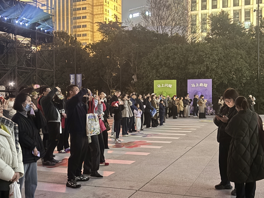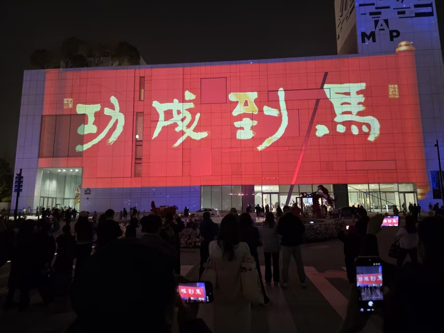 18时刚过,小花圃里冉冉聚起不雅众。跟着一段摇荡的爵士乐响起,“醒目在浦好意思”光影秀拉开帷幕,蓝、黄、橙晕染的花体“2026”在2700浅薄米的墙面泄露。骏马从外滩天际线掠过,踏过万国建筑群的剪影,停留在浦东好意思术馆的屋顶。随后,它冲上云端,在天际中与宇航员相见,“马到凯旋”的横幅对联便在此刻伸开。骏马俯身向下,迈入好意思术馆,穿行于“图案的遗迹”展厅。“夜莺与玫瑰”书本装帧、诗会图釉面陶板上等卢浮宫展品接连亮相。尔后,万马奔腾的场景以3D恶果演绎,许多马背上王人驮着大红色的新年礼盒,为不雅众奉上新春道贺。8分钟的光影秀,频频有裸眼3D呈现,许多不雅众全程举入部属手机。现场不雅众杨先生暗意,“又有送福、又有对联,还有刚才看过的展品,嗅觉头绪很丰富。”